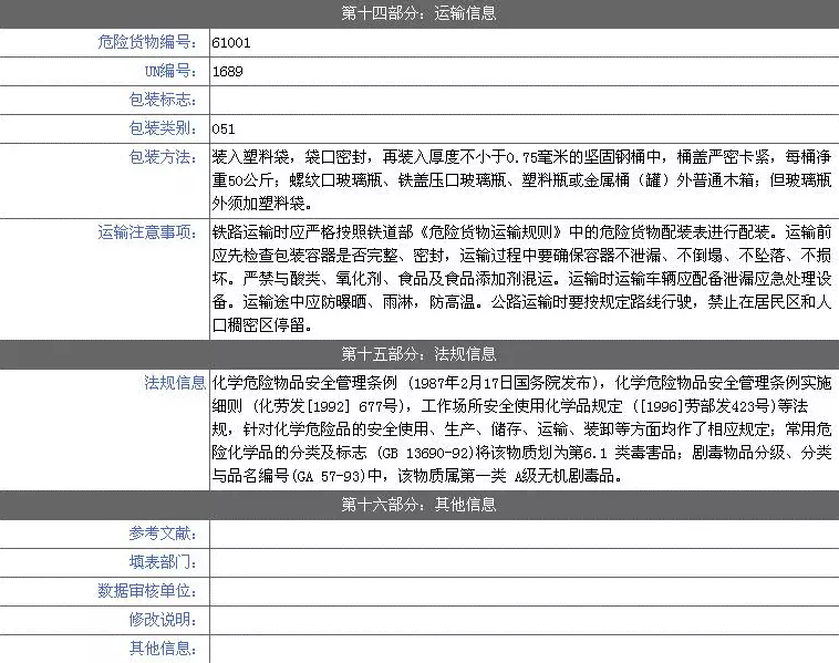 专业人员的解释是:“MSDS”实际上由四个部分构成,回答了四个问题,要想方便快捷的使用,首先得看你想干什么。以氰化钠的“MSDS”为例: