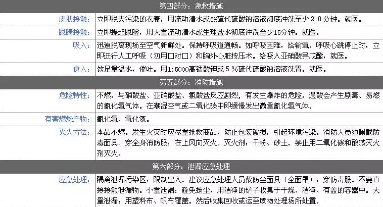 如果危险情形已经发生,需要紧急处置,直接看第4、5、6部分。该用什么灭火,泄漏怎么处理,上面写的一清二楚。